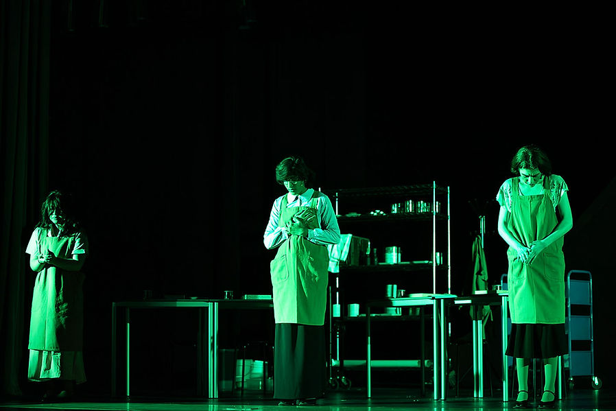 Use of green light to show discomfort actors are in, low angle to see their faces and feelings